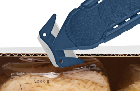 SECUMAX 150 MDP 已通過 GS 認證且符合食品標準,可用于手動切割任務(wù),特別是在生產(chǎn)和物流中:打開裝有原材料或成分的盒子,切割打開的托盤薄膜,切割塑料捆扎帶和膠帶,等。三合一刀片頭也非常適合刮削和劈裂。
